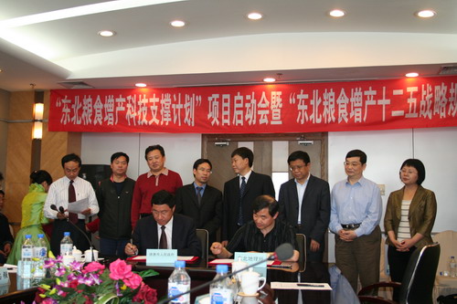 5月11日,在中科院“东北粮食增产科技支撑计划”项目启动会上,我所何兴元所长与吉林省德惠市林英昌副市长签署了《中国科学院东北地理与农业生态研究所与吉林省德惠市人民政府科技合作协议》,院生物局张知彬局长、长春分院王利祥院长、吉林省农委陈巳副主任等有关领导参加了签约仪式。