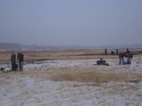 2009年~2010年的冬天格外地寒冷,皑皑白雪覆盖了美丽的东北大地。在中国科学院知识创新重要方向性项目“土壤湿度与积雪参量高精度微波遥感反演机理研究”、国家自然科学基金项目“ 我国东北区雪盖深度高精度被动微波遥感反演方法研究”和“非均匀条件下积雪微波辐射特性观测理解与模拟”的支持下,中国科学院东北地理与农业生态研究所在持续开展近两个月的户外积雪参量遥感观测后,联合中国科学院寒区旱区环境与工程研究所、北京师范大学、香港中文大学、中国科学院对地观测与数字地球科学中心和吉林大学等多家单位,由赵凯研究员领队,一行27人,历时8天,在吉林省的西部和东部地区,开展了野外积雪遥感联合实验。本次实验的目的是在自然环境条件下,测量未经人为干预的积雪遥感信息(光学、微波),与卫星遥感数据进行比对,发展积雪参量反演模型,提高被动微波遥感反演积雪参量(厚度、面积、雪水当量)精度。