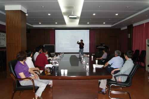 6月27日上午胥毅军副教授做了题为“Louisiana Coastal Wetlands and Hydrologic Alterations – Lessons Learned from the Mississippi River Delta”的精彩报告,报告首先介绍了美国湿地分布、面积损失和面临的主要问题,全面系统阐述了密西西比河大坝建设、河流渠道化、河流改道和调水工程等人类活动影响下流域水文过程改变导致径流量和输沙量的减少,同时全球气候变化影响下海平面上升,在气候变化与人类活动双重作用下滨海湿地及三角洲面临下沉和海水入侵等严峻的挑战,对滨海湿地水环境与水生态亟需研究的关键科学问题进行了评述。最后,介绍了他研究团队近期承担完成的5个有关湿地水文水质研究的案例,以及日前牵头起草的海-陆相互作用研究重大行动计划。之后,与我所科研人员和研究生就湿地水文水质研究热点问题进行了交流与讨论。下午,参观了中国科学院湿地生态与环境重点实验室,王国平副主任详细介绍了重点实验室基本情况和仪器设备测试使用状况。