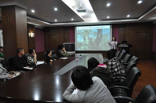 5月9日上午,Middleton研究员作了题为Multivariate statistics in vegetation analysis的报告,通过对方差分析和多元统计分析方法进行介绍和对比入手,具体介绍了不同统计方法进行数据分析的原理与过程,指出多元统计分析方法与其他分析方法相比较在解释物种群落和环境因素相互关系等复杂的生态学问题时的优势。同时,Middleton研究员对目前关于多元统计分析方法较为流行的几种生态学统计软件的优缺点和使用方法进行了介绍。下午,Middleton研究员作了题为Using R statistical software in vegetation analysis 的报告,深入细致的介绍了R软件的工作原理以及其在解决复杂生态学问题数据分析时的作用。同时,结合目前已经合作开展的三江平原种子库研究案例,具体介绍了R统计学软件的使用方法。