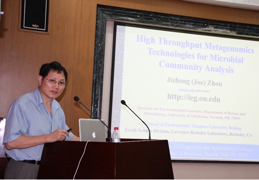 7月30日,应我所农田分子生态学科组邀请,美籍华裔科学家,清华大学环境学院教授、国际环境微生物基因组学及生态学研究领域的领衔科学家周集中教授来我所进行学术访问交流。并作了题为“High Throughout Metagenomics Technologies for Microbial Community Analysis”的学术报告。