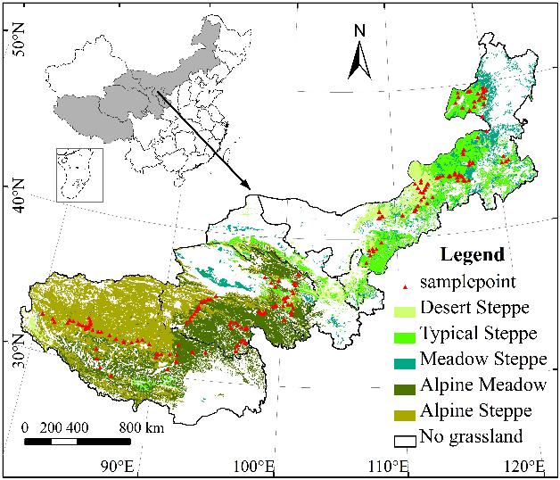 草地作为自然生态系统的重要组成部分,具有防风固沙、保持水土、调节气候等重要生态功能,对于维系生态平衡、发展草地畜牧业、振兴区域生态经济等均具有重要价值。中国草地面积位居世界第三,中国北方草地面积占国土面积的20%以上。草地植被地上净初级生产力(ANPP)是草地生态系统功能及草地提供的生物产品的重要表征,对中国北方草地ANPP的动态进行深入研究可以有效刻画草地生态系统对全球变化的响应。基于遥感手段,开展大尺度草地ANPP时空动态及其与气候因子间的关系分析,可为中国草地生态系统的保护和管理提供重要的科学依据。