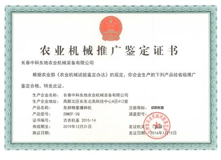 2BMZF-2Q型两行免耕精量播种机推广鉴定证书