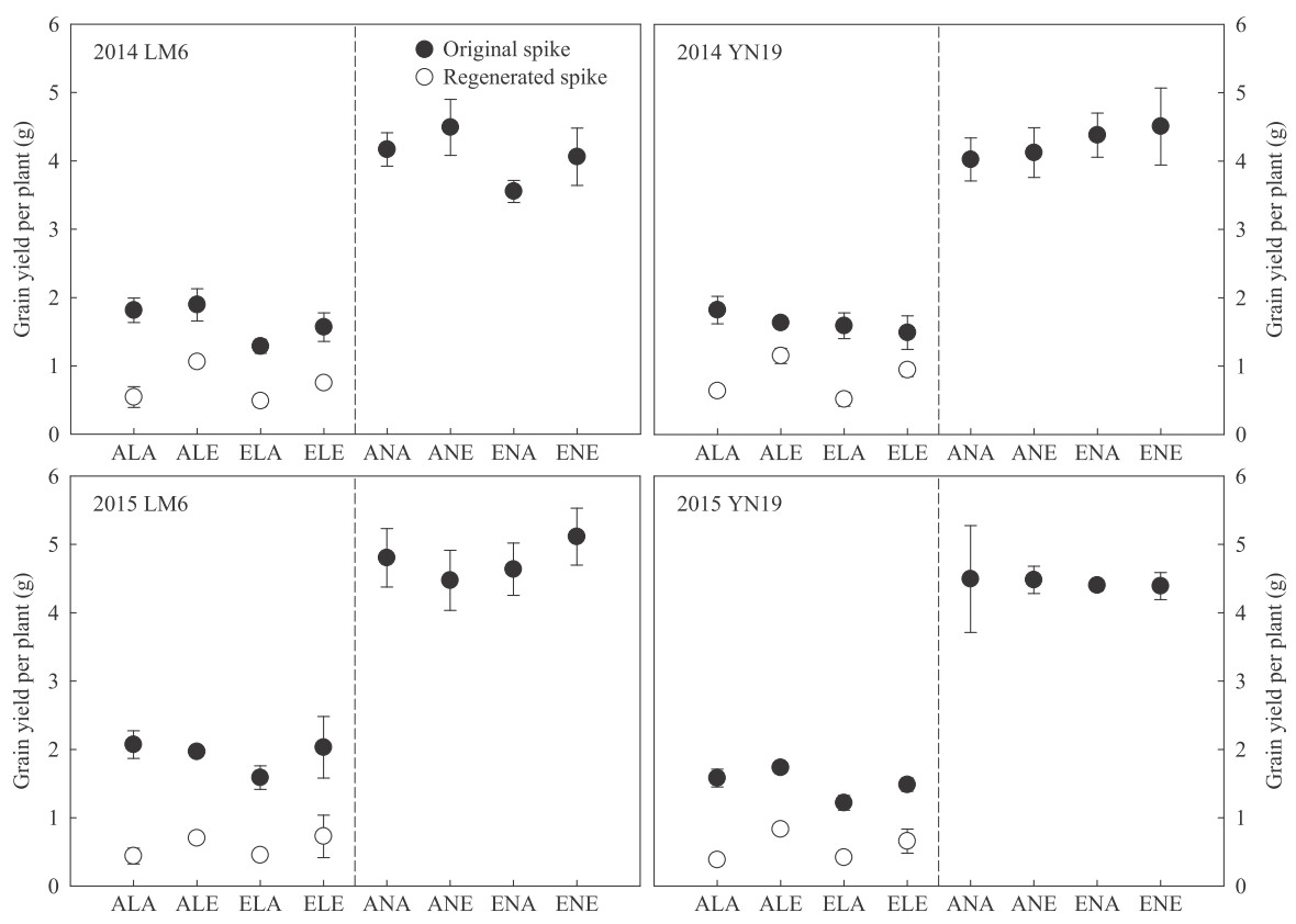 图1 不同生育期大气CO2增高对小麦籽粒产量的影响