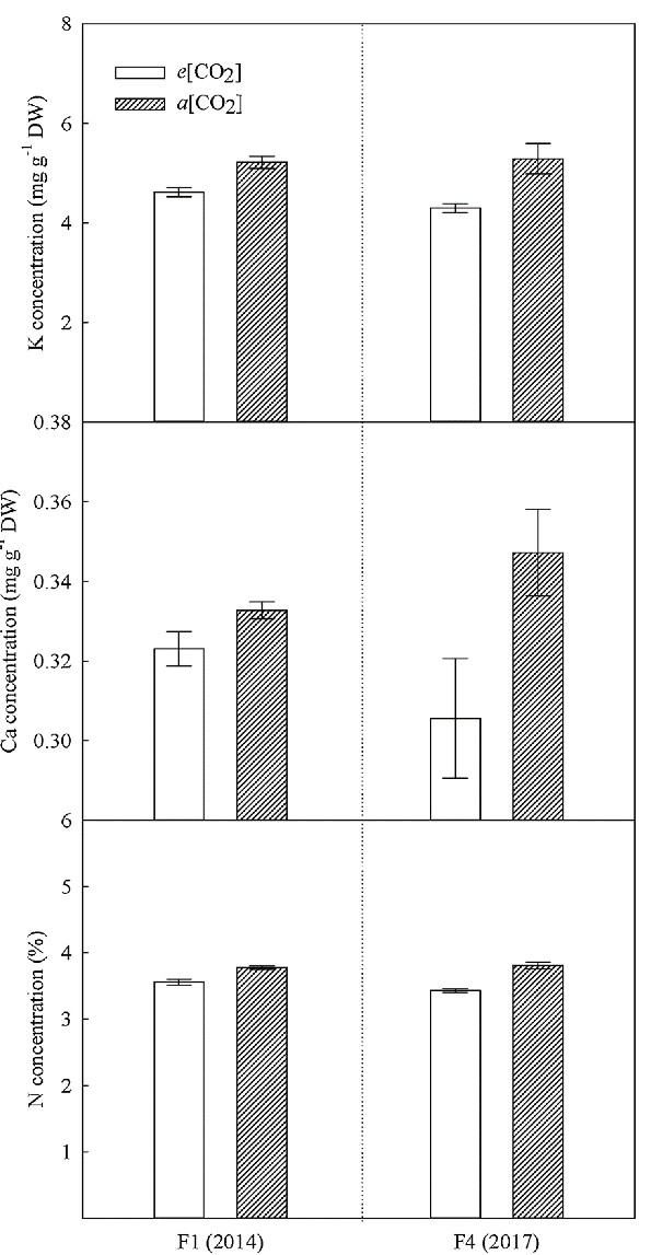 图2 连续四代大气CO2增高对小麦籽粒氮及矿质营养含量的影响