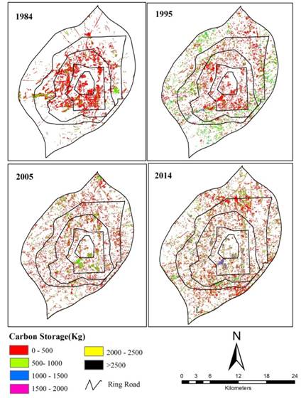 图 1. 长春市城市森林碳储量时空分布格局
