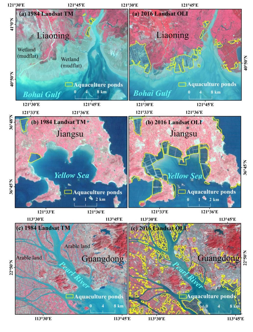 Ren, C., Wang, Z.*, Zhang, Y.*, Zhang, B., , Chen, L., Xi, Y., Xiao, X., Doughtye, R., et al., 2019. Rapid expansion of coastal aquaculture ponds in China from Landsat observations during 1984-2016. International Journal of Applied Earth Observation and Geoinformation, 82, doi.org/10.1016/j.jag.2019.101902.