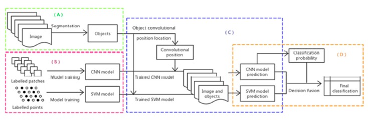 研究人员提出的面向高空间分辨率影像的OSVM-OCNN分类算法,首次在对象级别结合了浅层分类器(SVM)和深层分类器(CNN),捕获了两种分类器在影像特征提取方面的优势。使用高空间分辨率光学和雷达影像对算法进行了验证,实验表明相比于基于像元的分类方法,OSVM-OCNN显著地提高了土地覆被的分类精度,是一种高效率高精度的遥感分类算法。