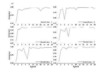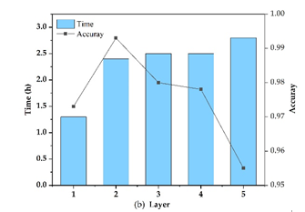 图2 卷积核大小及卷积层数设置对深度学习算法精度及效率的影响