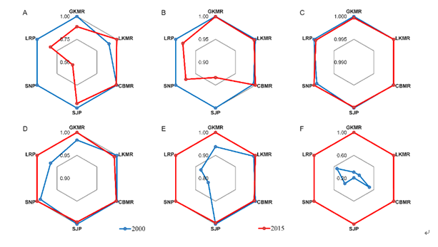 东北地理所地理景观遥感和城市森林与湿地团队的研究人员利用Landsat系列卫星遥感影像解译获取的2000和2015年土地覆盖数据,探讨了国家实施一系列生态工程以来东北地区的土地覆盖变化特征,进而利用InVEST模型分析了东北地区生态系统服务的时空格局及其地理空间异质性,深入讨论了不同政策影响下的东北地区土地覆盖变化特征,及其对生态系统服务变化的影响。
