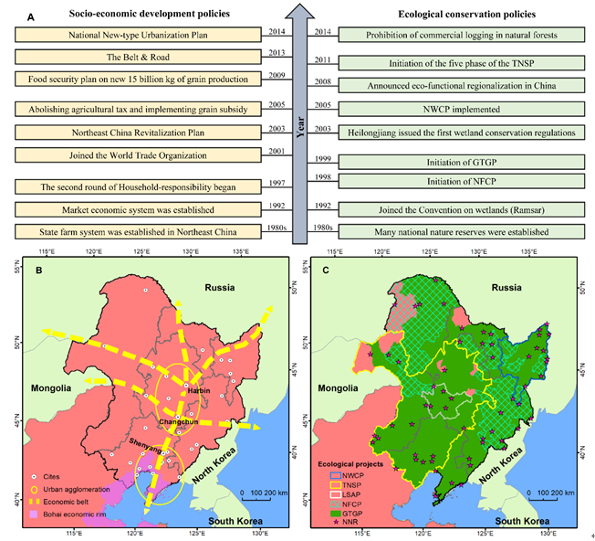 论文信息:Mao, D., He, X.*, Wang, Z., et al., 2019. Diverse policies leading to contrasting impacts on land cover and ecosystem services in Northeast China. Journal of Cleaner Production, 240, 117961, https://doi.org/10.1016/j.jclepro.2019.117961.