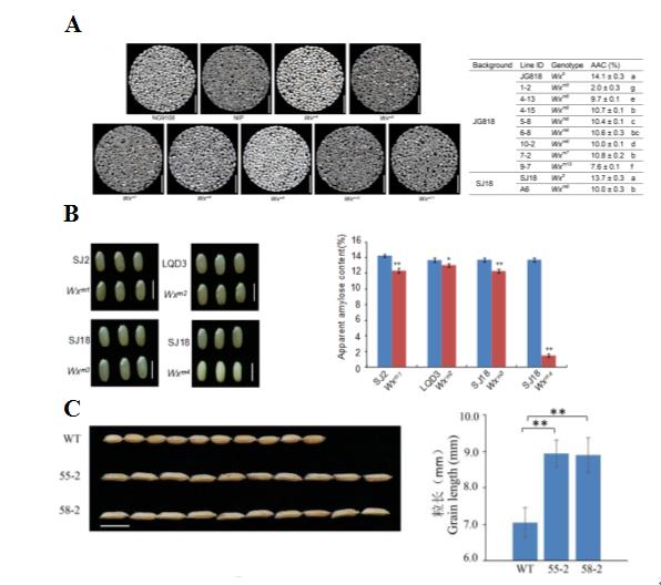 图1 基因编辑技术创制的低直链淀粉含量水稻与长粒香型水稻