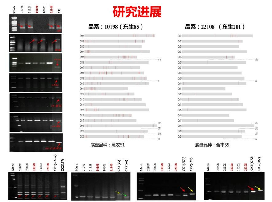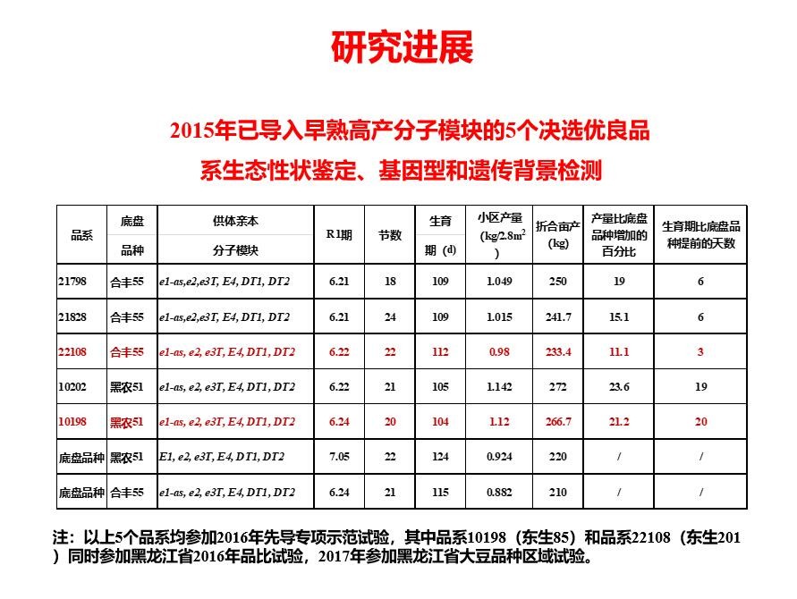 东生83和东生85是中国科学院东北地理与农业生态研究所刘宝辉团队和黑龙江省农科院牡丹江分院大豆研究所任海祥团队合作育成。东生83是经多基因聚合杂交,系谱法选择育成,成功践行了基因聚合育种。东生85育成是采用结合分子模块育种理念,通过将早熟模块e1-as导入底盘品种黑农51中,并分别经芽期和对种子耐旱性表型和分子模块筛选鉴定为2级耐旱初级分子模块设计型突破性品种。