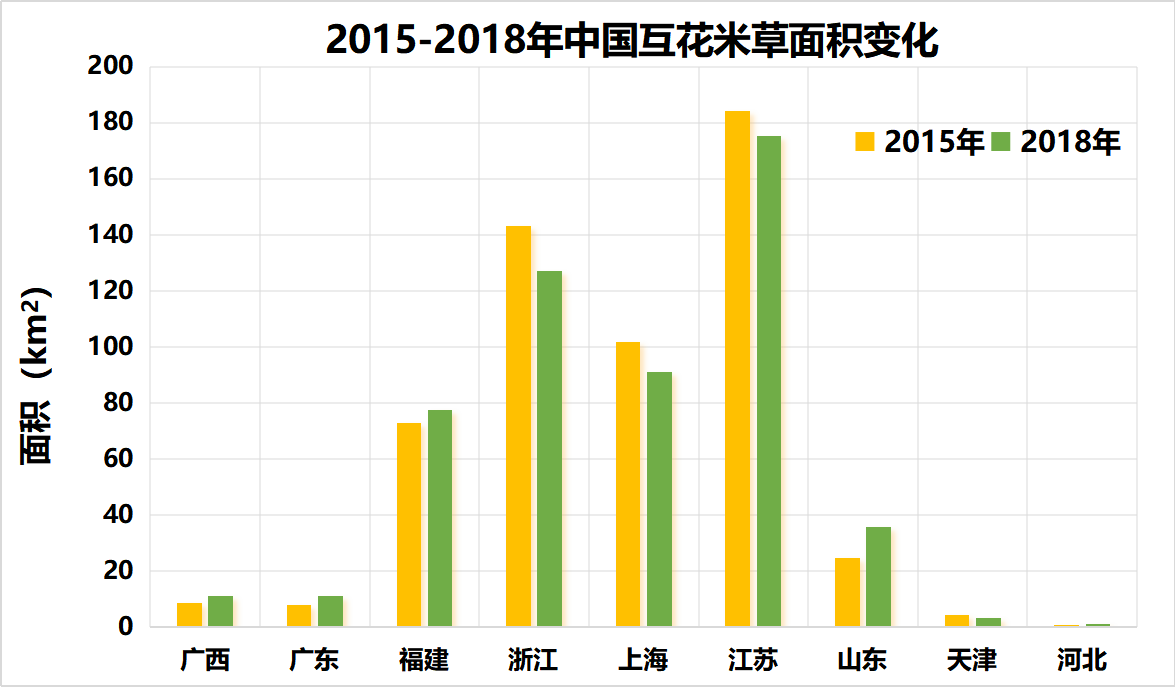 2015-2018年中国互花米草面积变化
