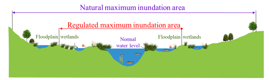图3 自然和水库大坝建设情境下河滨湿地淹没面积变化的概念图