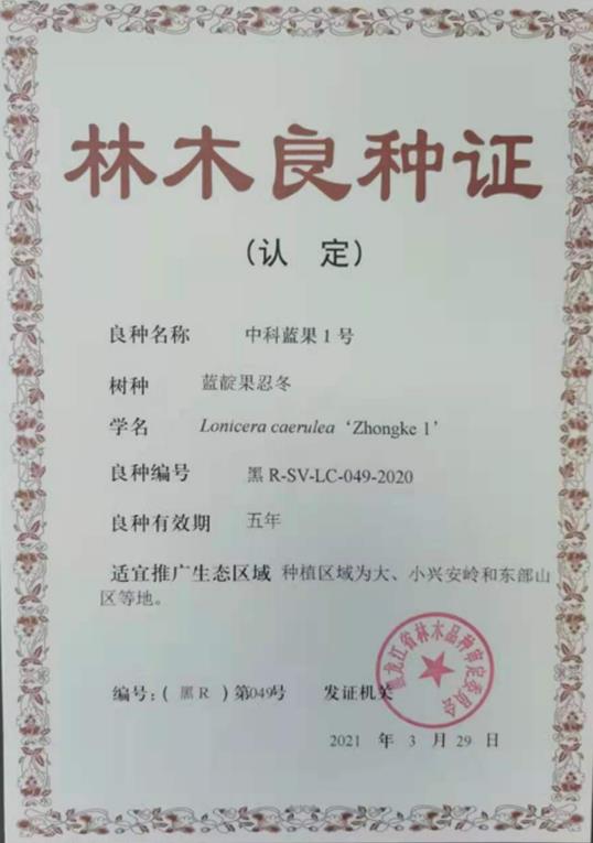 东北地理所“中科蓝果1号”和“中科楤木2号”喜获林木良种证