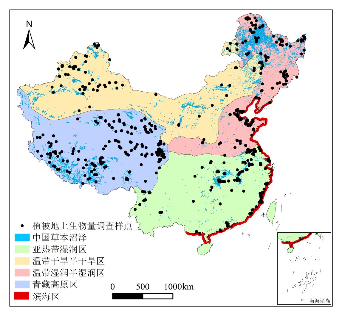 图1 中国草本沼泽植被分布及其地上生物量调查样点