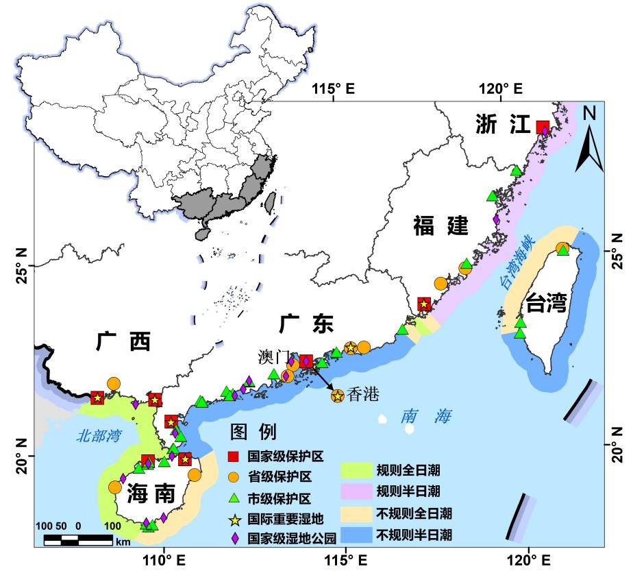 红树林是生长在热带、亚热带海岸潮间带或河流入海口的湿地木本植物群落,是全球生产力最高的生态系统之一。由于其独特的海陆过渡特征,红树林在维持滨海生态稳定、促进海陆能量循环中起着重要作用。同时,红树林沉积过程中能够封存大量有机碳,在减缓全球变暖等气候变化中扮演着重要角色。2015年9月,联合国可持续发展峰会正式通过了《2030年可持续发展议程》(Sustainable Development Goals,SDGs)。该议程涵盖了17个全球可持续发展目标(SDGs)和169个具体目标(Targets),是包括社会、经济、环境三大方面的综合目标体系。红树林的保护、管理和恢复与多项联合国可持续发展目标(Sustainable Development Goals,SDGs)密切相关。然而,迄今还没有面向SDGs的中国红树林时空变化分析。