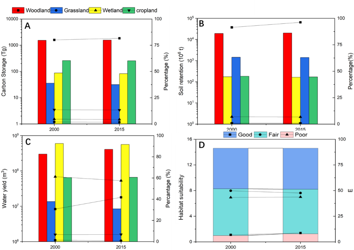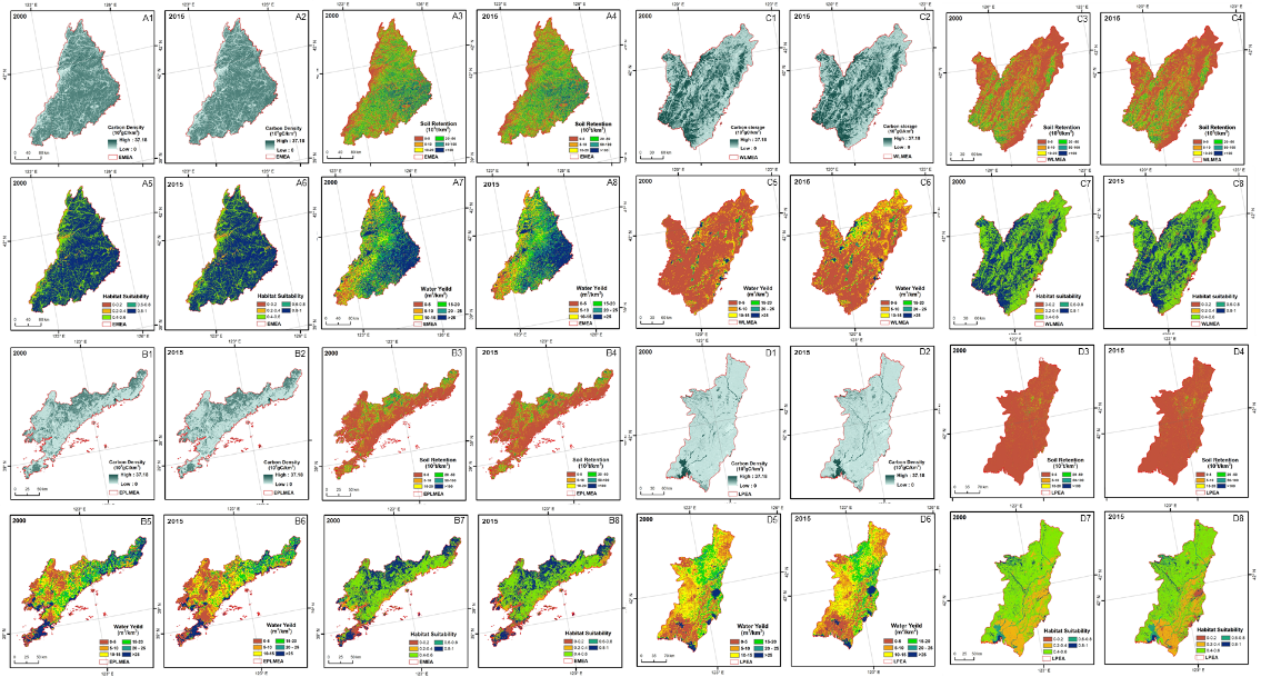 明确生态系统服务的时空变化特征是生态系统可持续管理的重要前提。探讨多重政策驱动下生态保护工程对区域生态系统服务变化的影响,对于制定区域可持续发展管理决策具有重要的现实意义。