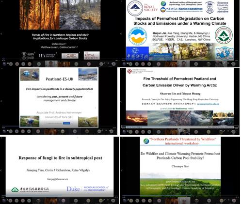 首先,东北地理所副研究员高传宇介绍会议召开背景及特邀报告专家信息。围绕“气候变化下的泥炭沼泽、野火及其潜在影响因素、野火与碳循环以及泥炭沼泽对环境扰动的恢复能力”等主题,来自英国斯旺西大学Stefan H. Doerr教授、东北林业大学金会军教授、英国约克大学Andreas Heinemeyer副教授、香港理工大学黄鑫炎副研究员、中国科学院植物研究所田建卿副研究员以及高传宇副研究员分别从野火碳循环,气候变化引起的永久冻土区退化,规划火烧对泥炭沼泽碳库影响,永久冻土区泥炭沼泽野火阈值,火扰动下亚热带泥炭沼泽中真菌群落恢复,以及沉积记录中野火和气候变化对泥炭沼泽碳库影响等角度详细介绍了各自最新的研究成果。