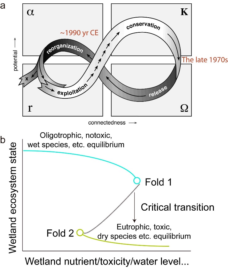 近几十年来,在气候变化和人类活动的双重干扰下,全球湿地的损失和功能退化速率远大于其它自然生态系统,严重影响了区域生态环境和可持续发展。为服务国家生态文明建设需求,维持湿地可持续发展,急需开展湿地保护和恢复的基础理论及关键技术研究工作。从湿地生态恢复目标的制定方法上看,由于缺乏对湿地弹性和适应性循环的深入了解,目前常用的历史记录法、参考点法等通常把系统受到扰动之前的生态特征设定为恢复参考目标,导致恢复所需成本过高、周期过长。