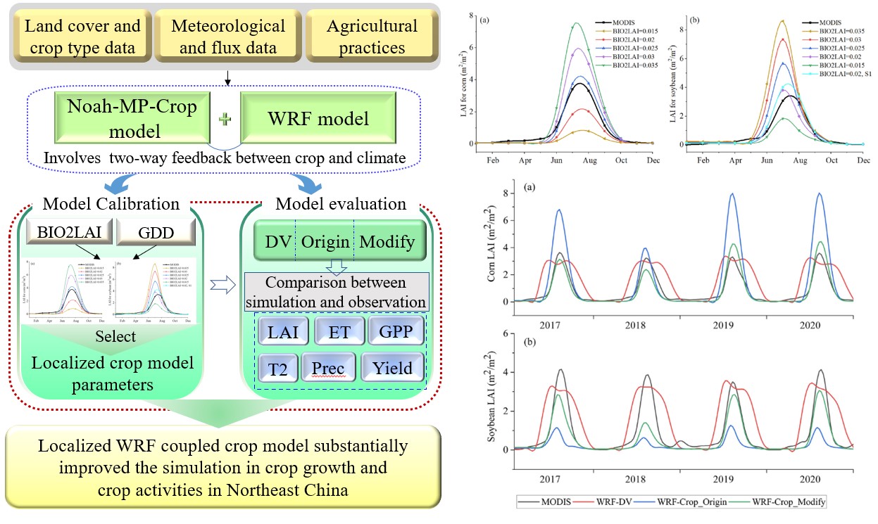 Lingxue Yu, Ye Liu, Tingxiang Liu, Entao Yu, Kun Bu, Qingyu Jia, Lidu Shen, Xingming Zheng, Shuwen Zhang. Coupling localized Noah-MP-Crop model with the WRF model improved dynamic crop growth simulation across Northeast China. Computers and Electronics in Agriculture, 2022. https://doi.org/10.1016/j.compag.2022.107323.