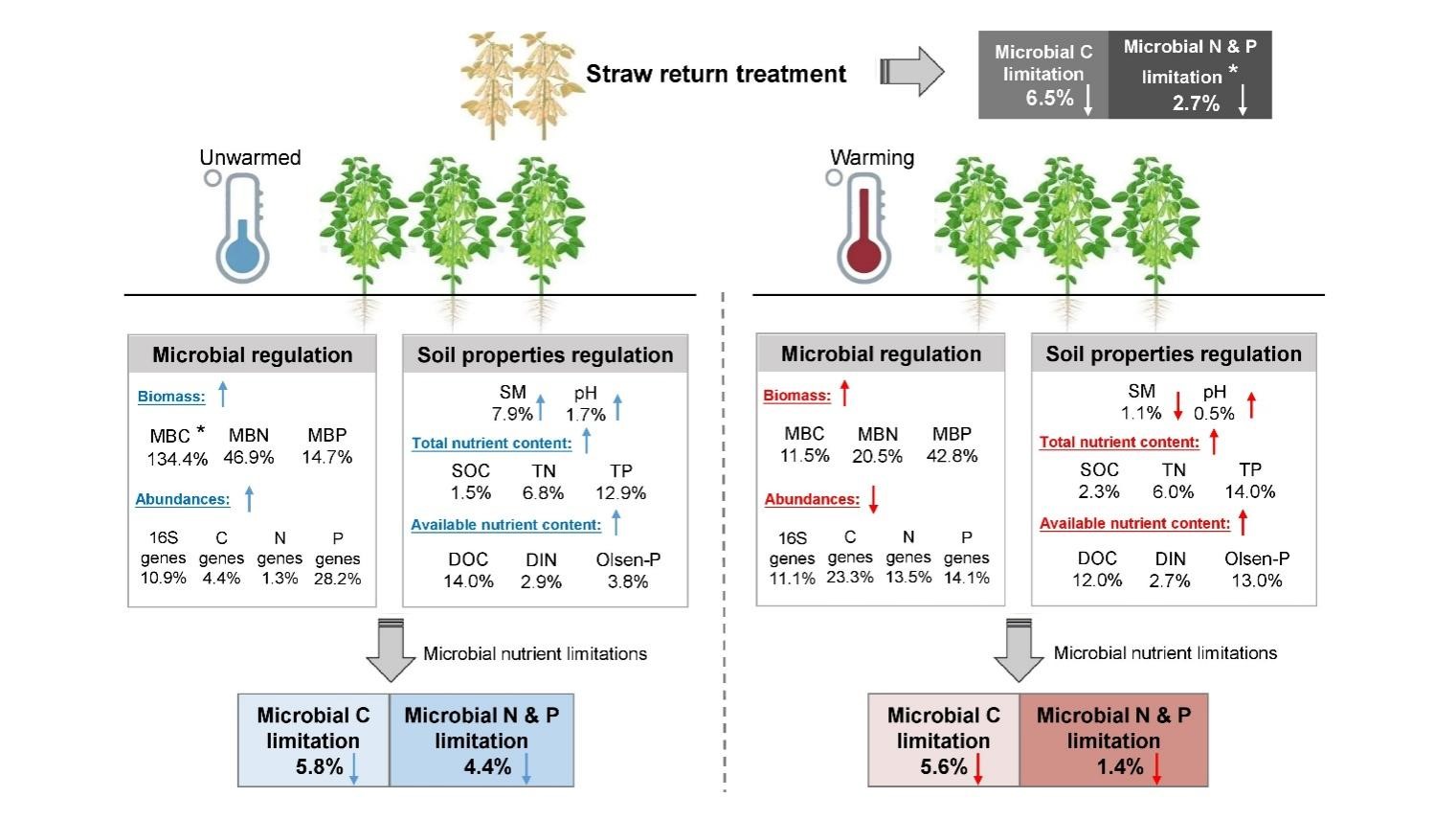 图2 增温和秸秆还田对微生物养分限制的影响途径