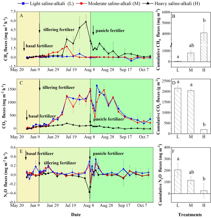东北地理所在盐碱稻田碳氮气体排放机制研究方面取得进展