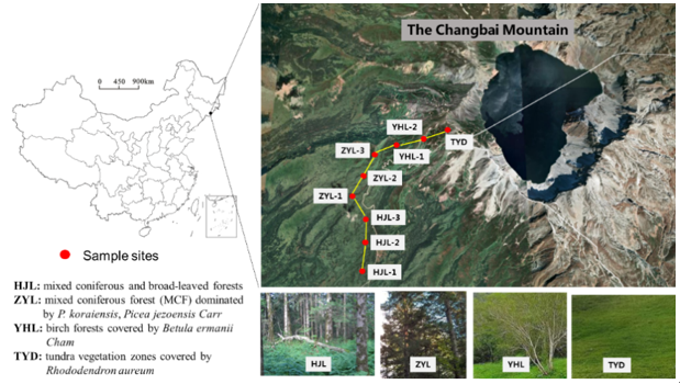 东北地理所湿地生物与环境学科组研究人员按照海拔梯度对长白山土壤、植被等开展了系统调查,基于热裂解-气质联机(Py-GC/MS)与热重分析(TGA)分析,揭示了长白山不同植被带土壤碳库稳定性维持机制。