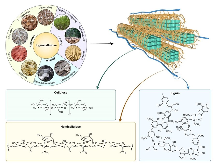 图1常见的木质纤维素生物质及其成分和结构