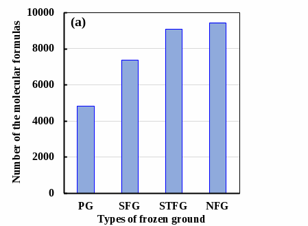 图1 不同冻土区湖泊水体DOM的分子组成分析. PG—永久冻土区,SFG—季节性冻土区,STFG—短时冻土区;NFG—非冻土区.