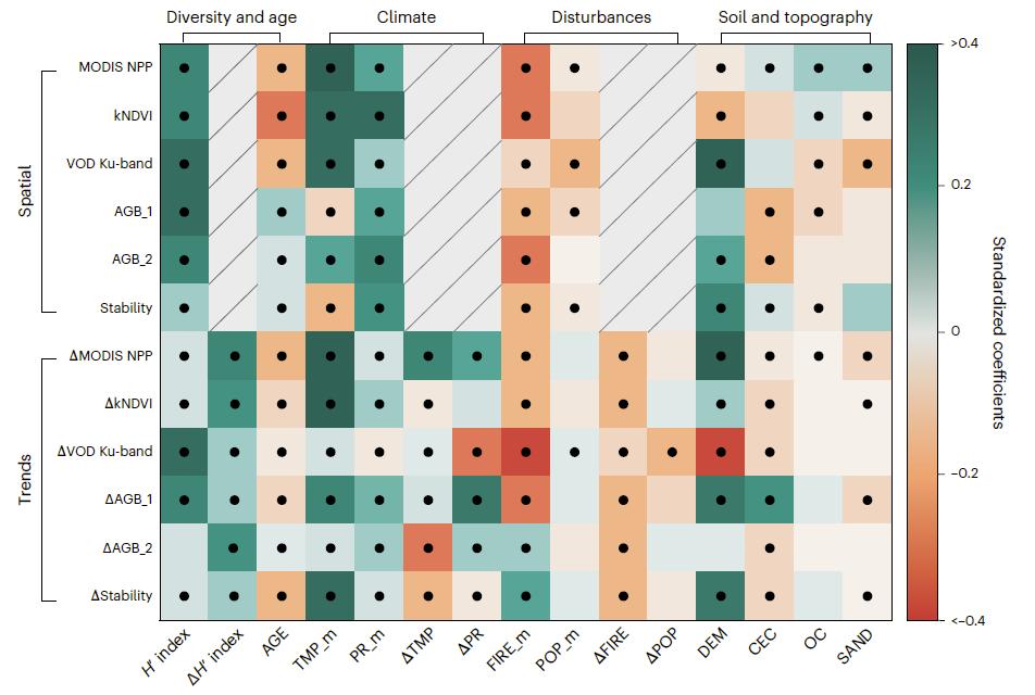 树种多样性在维持森林生态系统功能尤其作为重要碳汇方面发挥着关键作用。过去三十年,由于气候变化和二氧化碳浓度的上升导致了区域间的森林动态失衡(如生长或死亡),全球森林面积经历了显著变化,但大尺度上森林树种多样性对气候变化的响应仍不清楚。