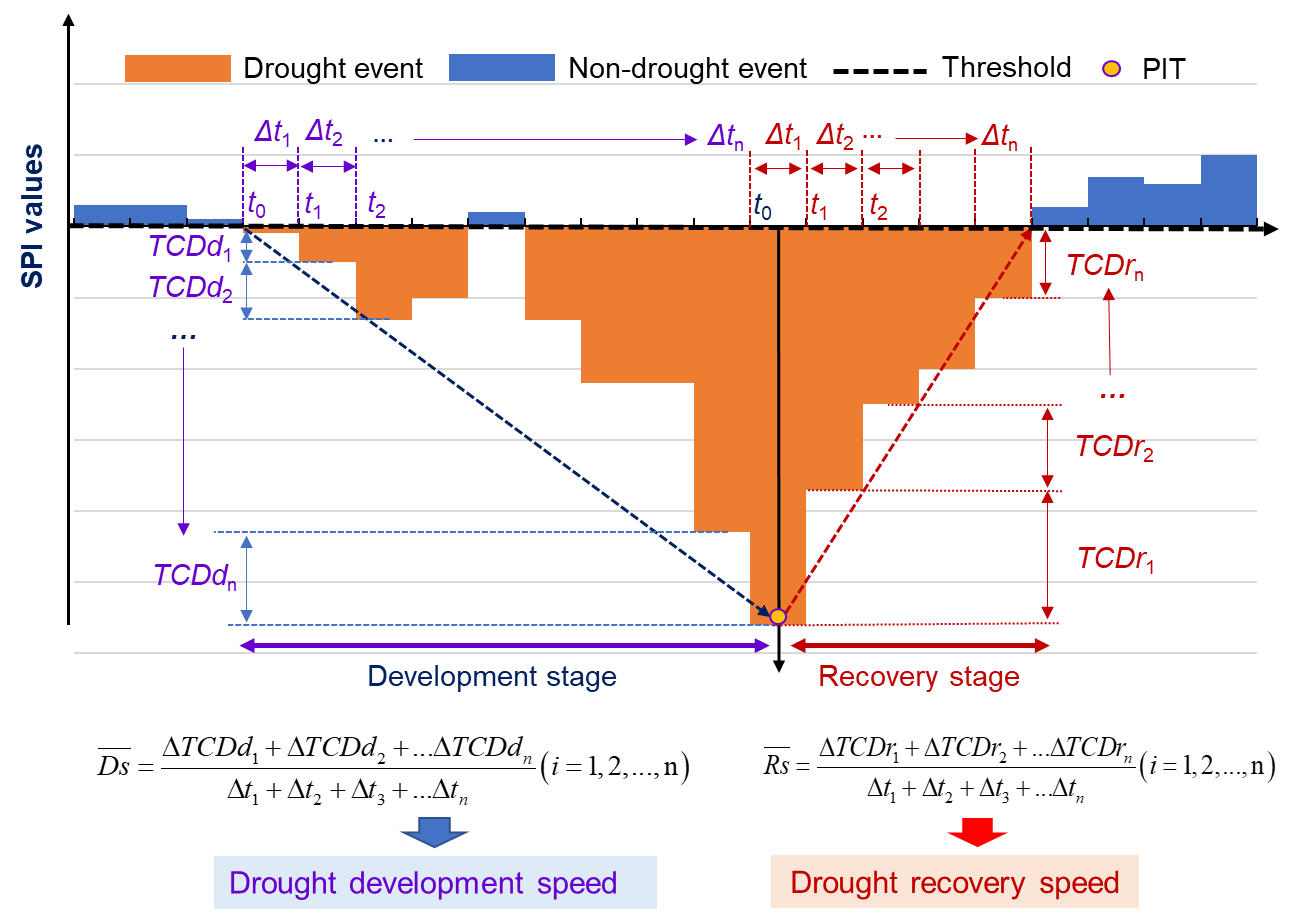 气候变化引起干旱频发和强度增强,并呈现爆发速度加快的趋势,对全球水安全、粮食安全和生态安全产生深远的影响。干旱演化速度在很大程度上决定了干旱的持续时间、强度、严重性及其致灾性,因而成为近年来气象水文学领域研究的热点和前沿。然而,已有研究多关注单一干旱类型的时空演变特征及多类型干旱之间的传播过程,缺少从干旱事件内在过程(发展过程和恢复过程)视角对干旱演化速度的认识,给干旱监测、风险预估与有效应对带来诸多挑战。