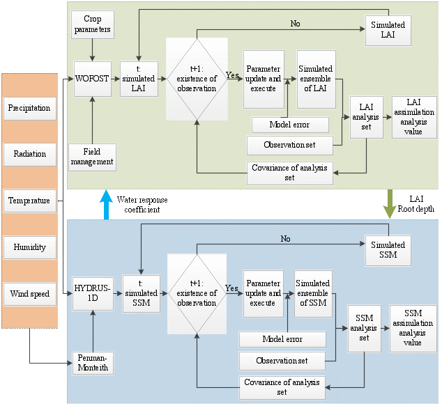 图1耦合WOFOST与HYDRUS-1D模型同化多参数估算根区土壤水分框架