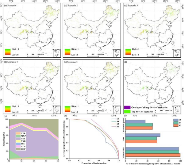 针对相关问题,我所湿地遥感研究团队结合中国湿地分布数据(China_Wetlands)、旗舰物种分布数据(丹顶鹤、白头鹳、白枕鹤、黑颈鹤、东方白鹳和白鹤)、国际重要湿地分布数据(82个)、重点鸟类分布区数据、人为活动数据等,应用Zonation模型,结合重点鸟类分布点及水源数据进行精度验证,揭示了中国湿地KHFAs的时空格局及未来趋势。