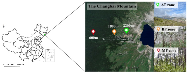 微塑料污染已延伸至偏远山地生态系统,但其对土壤生态系统功能潜在影响的研究仍较为有限。鉴于此,中国科学院东北地理与农业生态研究所湿地生物与环境研究团队在长白山针阔混交林(MF)、岳桦林(BF)和苔原带(AT)三个典型海拔带开展原位实验,系统揭示了聚乙烯(PE)微塑料对土壤养分循环、微生物多样性及碳代谢功能基因的影响,并定量解析了其对土壤生态系统多功能性的驱动机制。