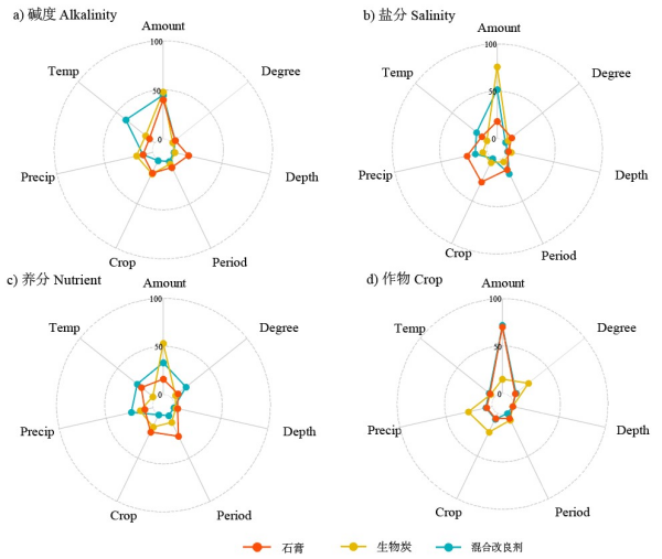图3不同改良剂应用效果的影响因素相对重要性解析