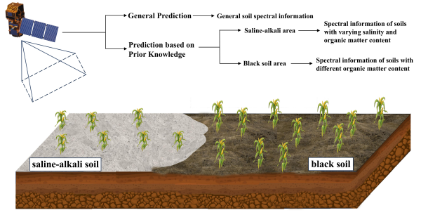 图1. 基于先验知识并结合盐碱和黑土区划分的光谱信息选取示意图