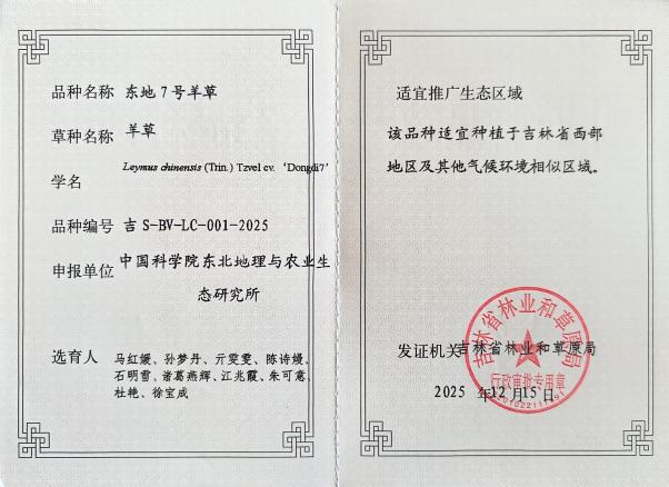 羊草(Leymus chinensis)作为我国北方草地生态修复与畜牧业发展的核心种质,其资源评价与选育利用一直备受学术界关注。近日,中国科学院东北地理与农业生态研究所(以下简称“东北地理所”)在羊草生物学特性研究及优良品种选育方面取得系列进展:系统性研究成果在国际生态学期刊《Journal of Ecology》发表;同时,团队选育的“东地7号”“东白1号”等羊草新品种通过审定,实现了羊草从基础理论研究到生产应用实践的有效衔接。