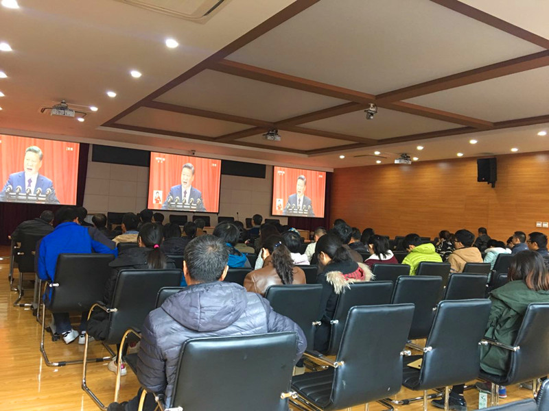 中国共产党第十九次全国代表大会开幕会于10月18日上午9:00在人民大会堂大礼堂举行。东北地理所在长春所区、哈尔滨所区分别设置分会场,组织广大职工、学生约200余人集中收看了大会开幕式。十九大开幕式历时3个多小时,党员们全神贯注倾听习近平总书记的报告,听到精彩之处不禁鼓掌。