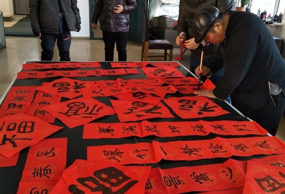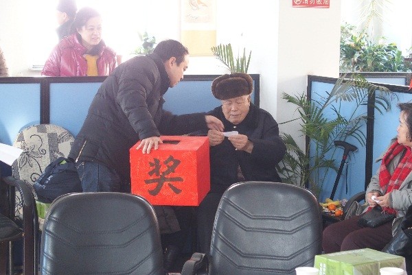 茶话会上,离退办周春华同志以精湛的书法,亲笔挥毫向大家赠送春联和福字。历时两个小时的新春联欢活动,在一片掌声和欢呼声中圆满结束。
