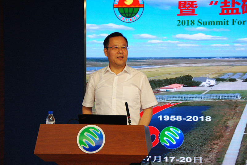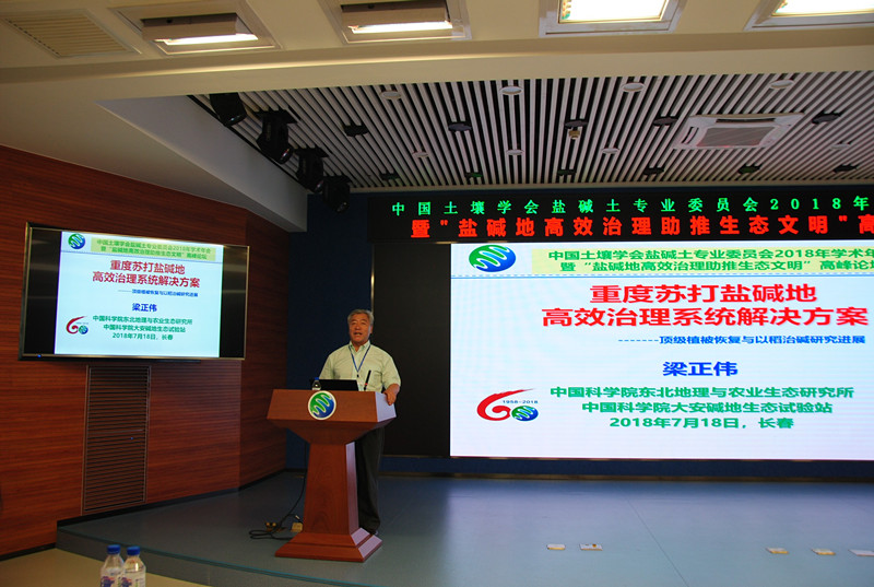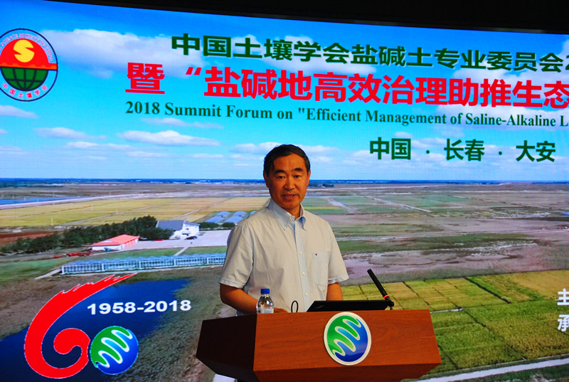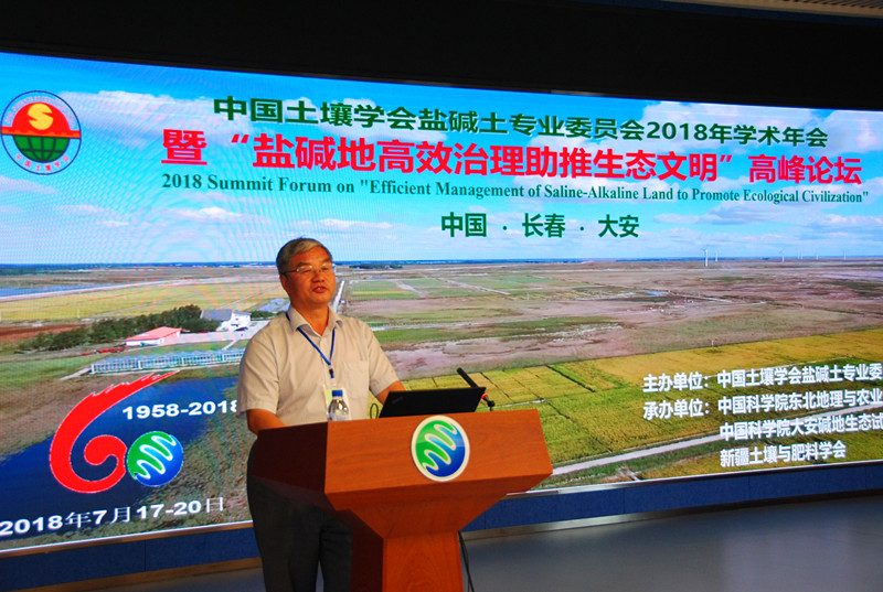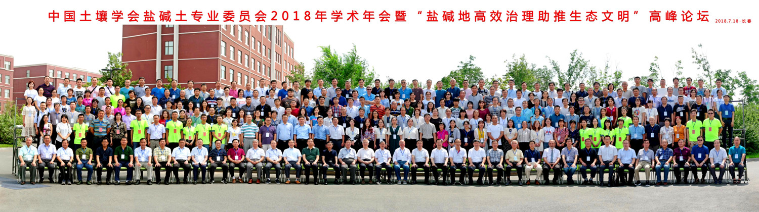 2018年7月17-20日, 由中国土壤学会盐碱土专业委员会主办,中国科学院东北地理与农业生态研究所,中国科学院大安碱地生态试验站,新疆土壤与肥料学会承办的中国土壤学会盐碱土专业委员2018年学术年会暨“盐碱地高效治理助推生态文明”高峰论坛分别在吉林省长春市和大安市隆重举行。来自国内外22所大学、72个科研院所相关领域的院士、知名专家、学者以及25家相关企业等与会代表约400余人参加了大会。