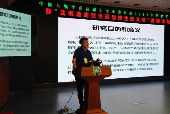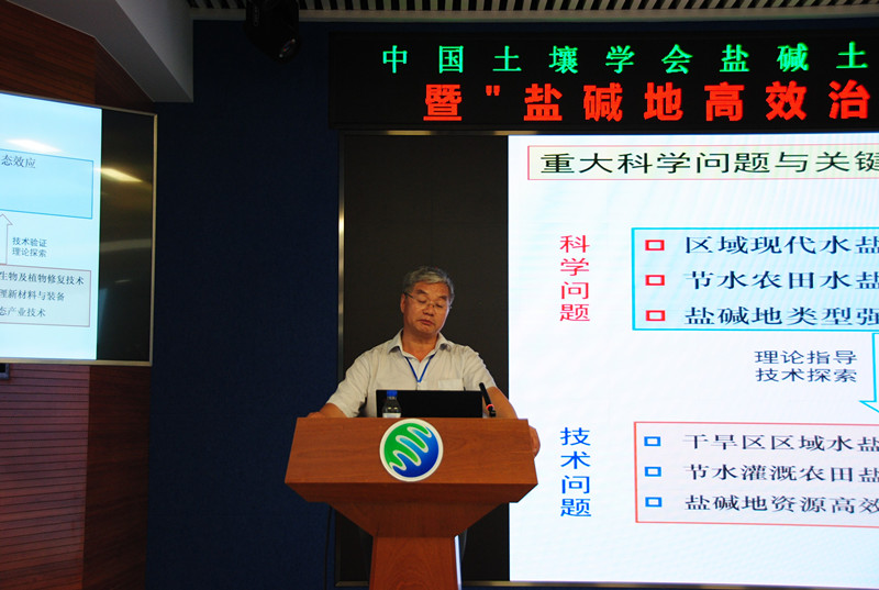 18日下午,来自国内的13位从事盐碱地研究工作的知名专家做了特邀专题报告。中国科学院新疆生态与地理研究所田长彦研究员,中国科学院南京土壤研究所杨劲松研究员,中国科学院遗传与发育生物学研究所刘小京研究员,中国科学院地理科学与资源研究所康跃虎研究员,清华大学能源与动力工程系王淑娟教授,西北工业大学应用化学系宁荣昌教授,中南大学薛生国教授,中国农业科学院农业资源与农业区划研究所程宪国研究员、鲁东大学资源与环境工程学院傅金民教授,以及中国科学院东北地理与农业生态研究所王志春研究员、赵凯研究员、田春杰研究员和梁正伟研究员等围绕我国西北新疆盐碱地、河套平原盐碱地、滨海滩涂盐碱地及中低产田,东北松嫩平原盐碱地治理研究进展与系统解决方案,以及微波遥感、土壤微生物、生物刺激素等新方法、新技术、新产品在盐碱地治理上的应用等分别做了专题学术报告。