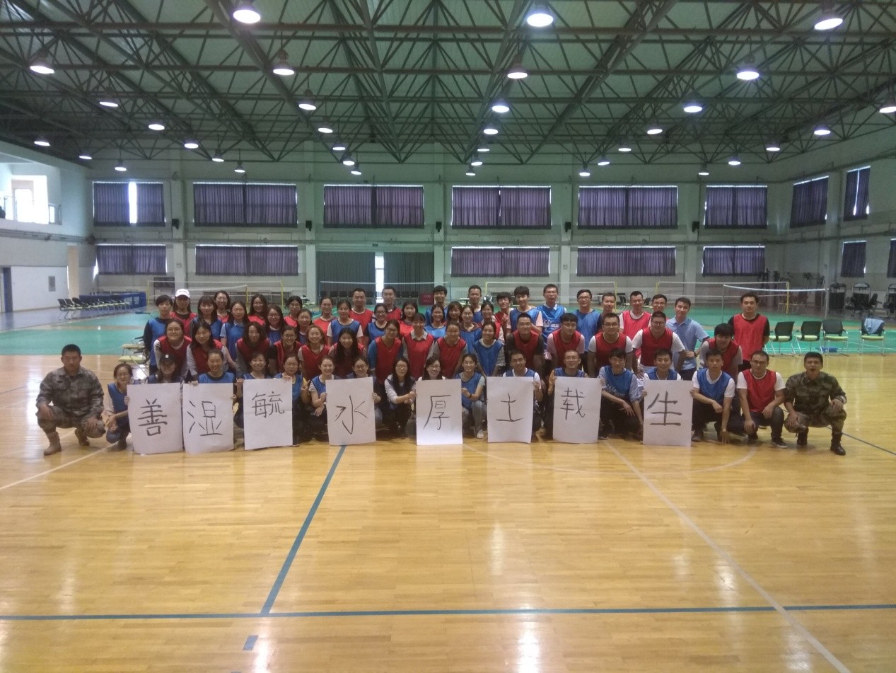 在团建及素质拓展活动的最后,参训学员将活动期间集体书写完成的“善湿毓水,厚土载生”8个字放在队伍的最前方,并集体合影留念,圆满的完成了此次培训。