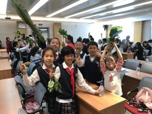 本次活动的负责人,盐渍土生态与改良学科组的马红媛副研究员为大家讲述了一堂图文并茂、生动有趣的“生态系统”入门课,生动讲解了人与自然、动物、植物和微生物及其环境之间的关系。为了增强对植物光合作用的理解,突出其产生的“有机物”是所有生物能量的源泉,还设计了果实“寻亲”游戏,让学生们深入了解了常见农作物和蔬菜的果实及为它们供应能量的叶子的特征,同时也让孩子们心怀感恩之心。