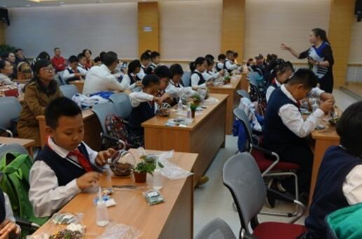 为了增强对生态系统进一步了解,活动为每个学生准备了一个微景观生态瓶。我所水环境污染与防治学科组的祝惠副研究员为学生们进行了现场悉心指导。指导从用土壤制作“高原”、“平原”、“盆地”等不同“微地貌”,到不同植物的组合搭配和人文环境的匹配,经过一系列有趣的步骤,每个同学制造了漂亮的微型“生态系统”。