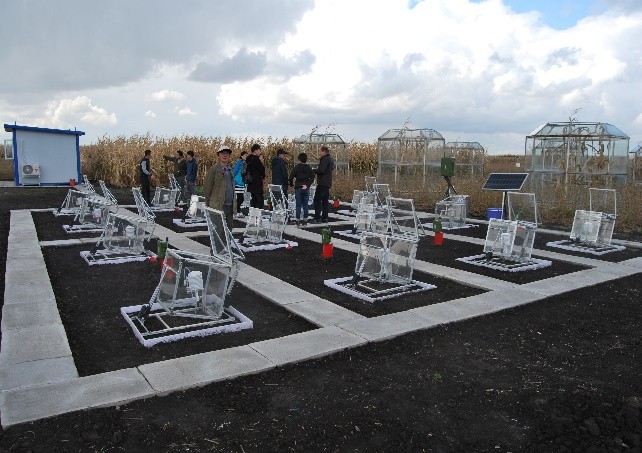 会议期间,与会专家前往海伦站参观了系列长期定位实验平台,并考察了新建的“黑土农田土壤养分循环实验平台”。该研究平台是海伦站建站以来,田间实验平台中科技含量最高,经费投入最多的实验平台,实现了田间原位、同步和实时观测土壤温室气体通量及其稳定同位素丰度的动态变化。在现场,专家从实验处理的设置、仪器测量的准确性以及观测系统的稳定性等方面提出了建设性意见和建议,为后续研究平台的顺利运行提供了保障。