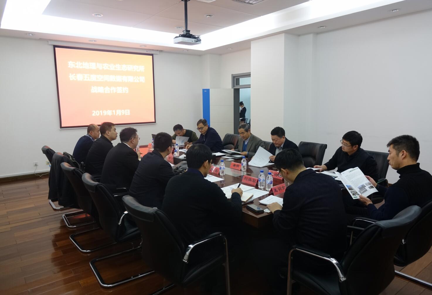 2019年1月9日,东北地理所与长春五度空间数据有限公司签署了战略合作协议。东北地理所所长何兴元、副所长姜明、所长助理王宗明、科研计划处副处长武海涛、院地合作办公室主任刘福涛、遥感与地理信息中心主任宋开山、刘焕军研究员、科研处处长助理王明全,五度空间数据公司董事长杨光、总经理孙岳、总工程师李飞和开发部经理刘忍权参加了签约仪式。