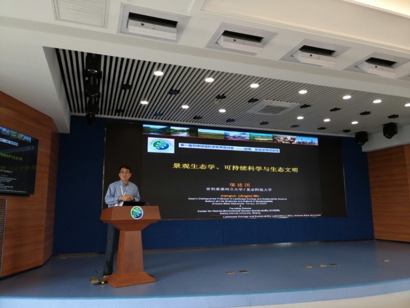 本届研讨会邀请到了国际著名景观生态学与可持续性研究专家、美国亚利桑那州立大学可持续性科学学院邬建国教授,邬教授应邀做了题为“景观生态学、可持续性科学与生态文明”的特邀报告,就景观生态学、可持续性科学和生态文明间的内涵及内在联系做了详细介绍,并就报告内容与在场青年学者进行了广泛和深入的交流。邬教授特别勉励可持续性研究青年学者积极投身祖国的“美丽中国”和“生态文明”并做出应有贡献。