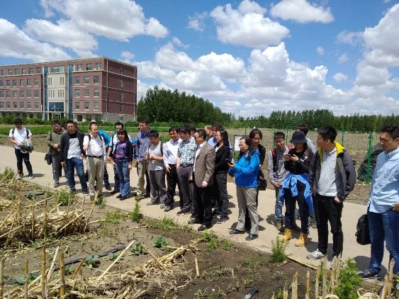 5月29日-30日,在松嫩平原西部盐碱湿地生态研究站,李晓宇副研究员简述了台站已有的“稻-苇-鱼-蟹”复合生态工程模式及成果,带领考察组考察了建设完成的500亩示范区,汇报了苇基食用菌栽培技术生产转化及苇基菌糠肥田技术研究进展,并指出课题希望通过完善湿地农业复合生态工程模式及生态产业链条,推动盐碱沼泽湿地生态功能提升和绿色产业发展。在大安碱地生态试验站,杨昊谕博士全面介绍了大安碱地生态试验站开展的盐碱地治理的主要技术、方法及进展,并详细介绍了盐碱地顶级植被羊草种群快速克隆繁殖技术和外源激素引发提升羊草生产力技术的研究进展,指出通过羊草扩繁技术集成及推广,实现盐碱地羊草植被的恢复。黄迎新研究员系统介绍了松嫩盐碱化草地形成原因、现状,以及盐碱化草地恢复方法的可行性以及未来的研究方向,指出“东北农牧交错带生态功能提升与绿色发展示范”课题希望通过脆弱生态系统的生态功能恢复及提升,发展绿色产业,最终实现生态效益、经济效益、社会效益的有机结合,为整个东北农牧交错带绿色可持续发展提供必要的技术支撑,助力精准扶贫,提出可推广、可复制的生态产业发展模式。